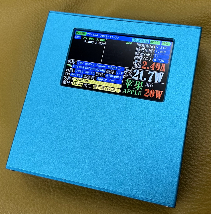关键词:电源测试仪、苹果电源真假识别器、TYPE-C数据线读码、苹果电源读码打印、快充协议监控