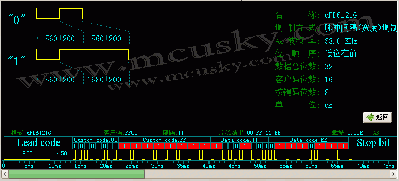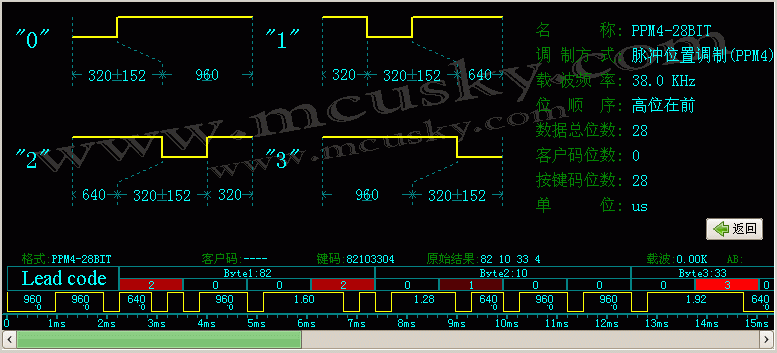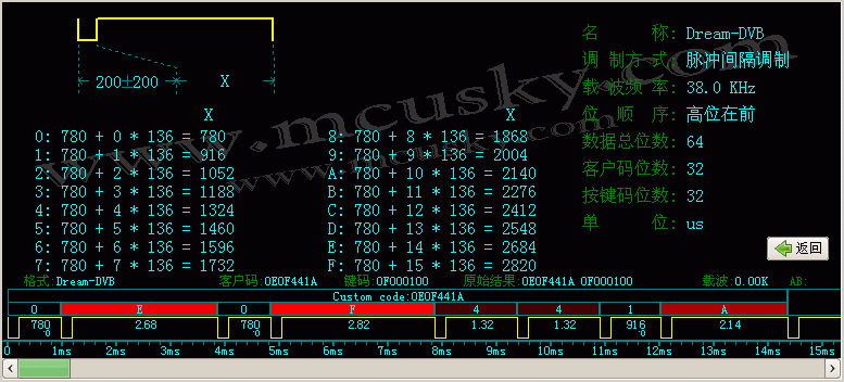 Dream DVB所使用的格式,用16种脉冲间隔代表16种逻辑0-F