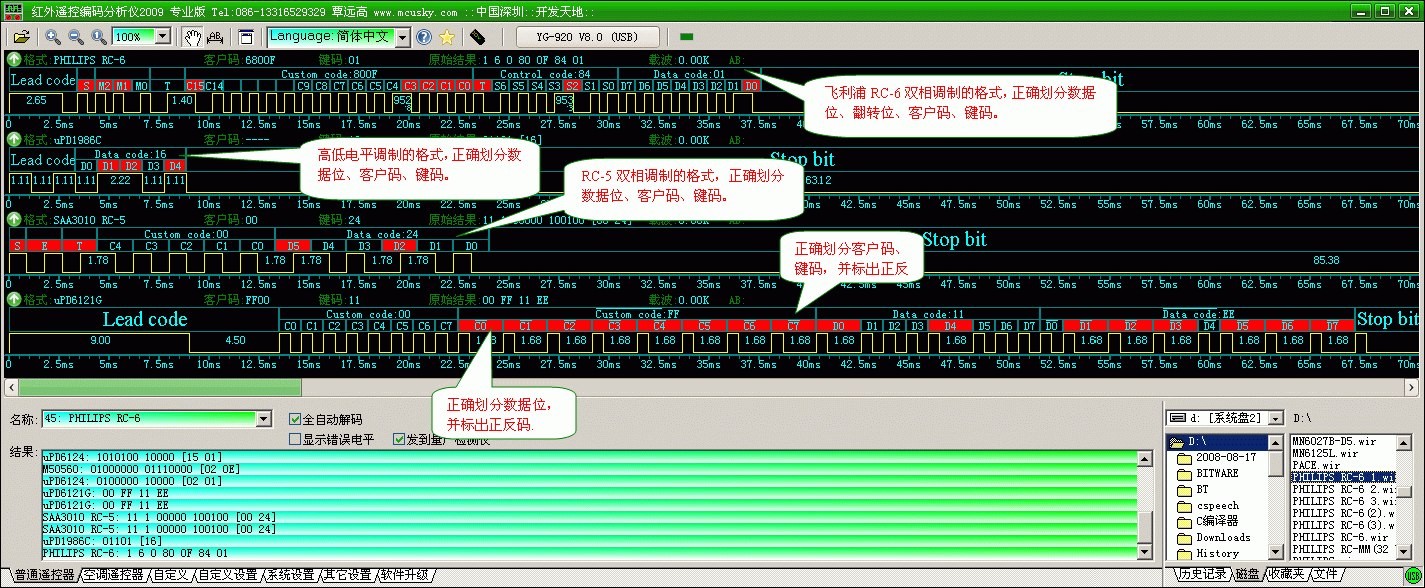 下图显示每一位数据的值,红色代表“1”,黑色代表“0”。