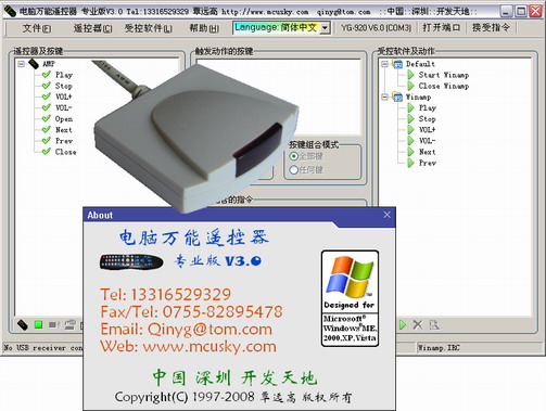 控制软件和以下任一款我们出品的接收器就可以实现电脑遥控。