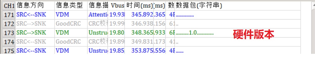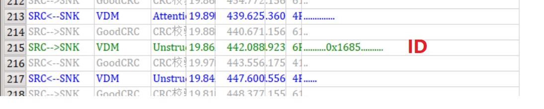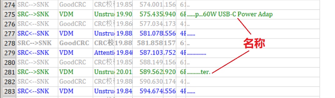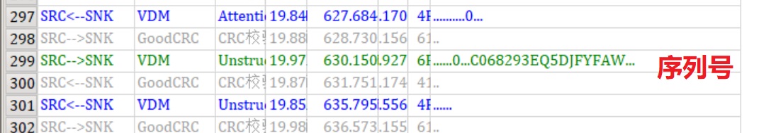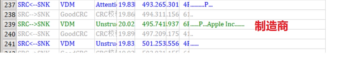 第二次通信如下图,如果你下载了软件请点击收藏夹里“MacBook通信波形2”,这次通信有308条消息,如果不算GoodCRC也有154条之多,看起来这些消息是苹果自己定义的私有协议。