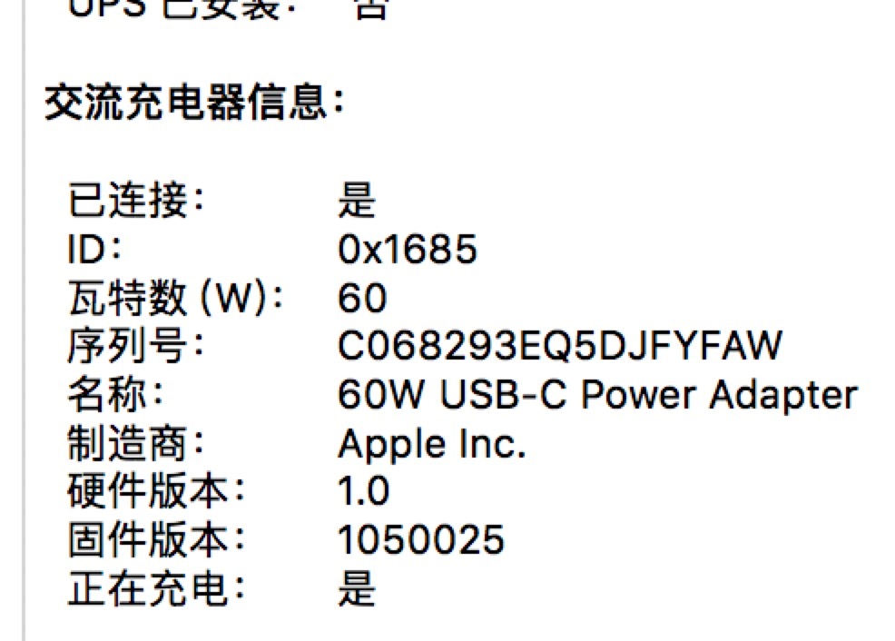 苹果电源除了支持标准的PD协议之外,还定义了一些私有协协议,第三方厂家的PD电源因为不支持私有协议,给MacBook充电时是无法查询到序列号等信息的,据说有厂家已破解MacBook充电协议,支持私有协议,在电脑上可以显示序列号等信息,本文只是抛砖引玉,希望你可以去发现更多好玩的东西:)。