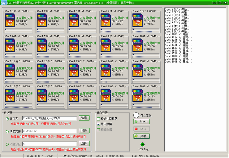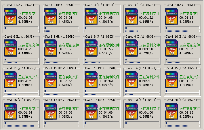 拷贝速度参考:同时拷贝20张卡,4GB容量需要16分钟时间,