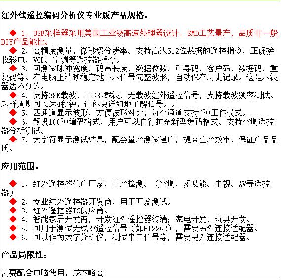 "遥控编码分析仪;红外遥控器编码分析仪;红外线遥控信号编码分析仪;红外线遥控检测仪测码器;遥控器测码器;万能遥控器测码器;多功能遥控器测码器;机顶盒遥控器测码器;空调遥控检测仪;遥控综合检测仪;红外遥控器综合测试仪;红外遥控器测码器;DVDVCD遥控检测;万能遥控器检测;多功能遥控器检测;机顶盒遥控器检测;学习型遥控器检测;空调遥控器检测".