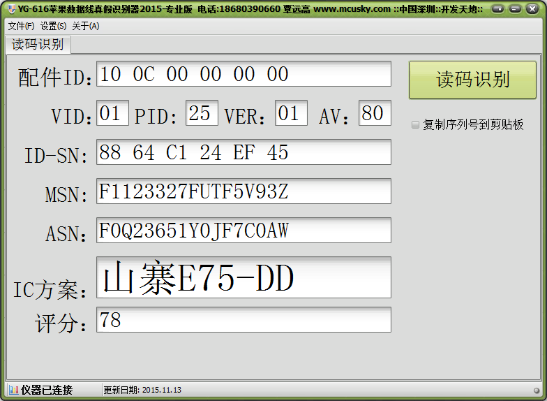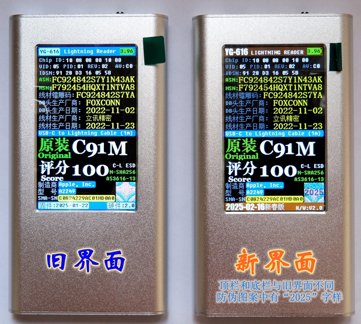 标配软件:YG-616苹果数据线真假识别器2020-专业版