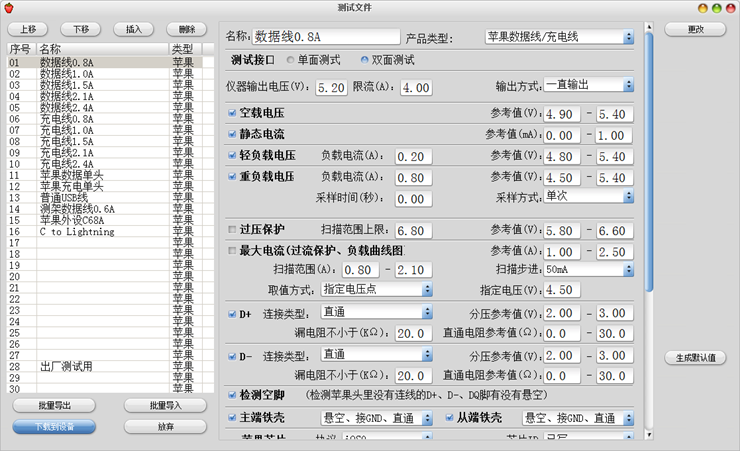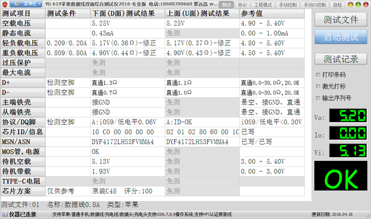 标配软件:YG-619苹果数据线双面综合测试仪2016-专业版