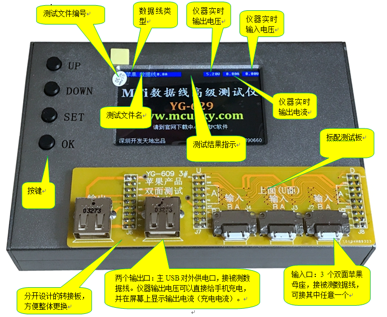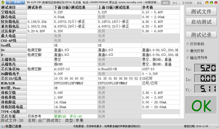 YG-629是YG-609的升级版,专为MFi工厂设计,增加以下几项功能,前面三项正是MFi所要求的