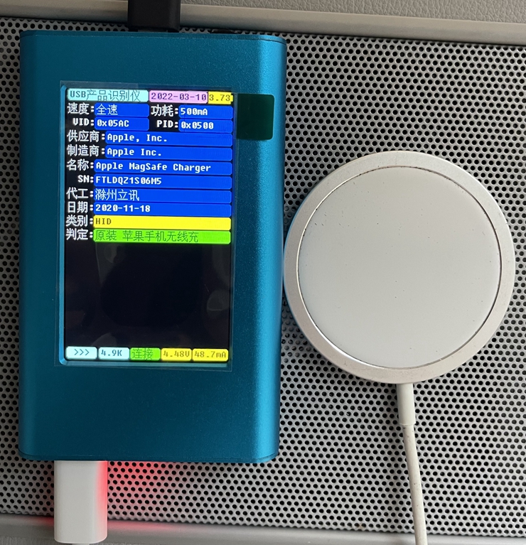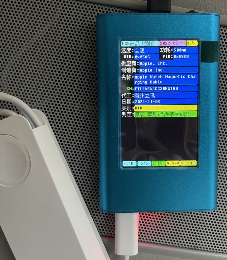 3、 支持部分苹果USB产品识别真伪,输出序列号用于打标(手表充电线、AirPod Case 充电盒、Magic
