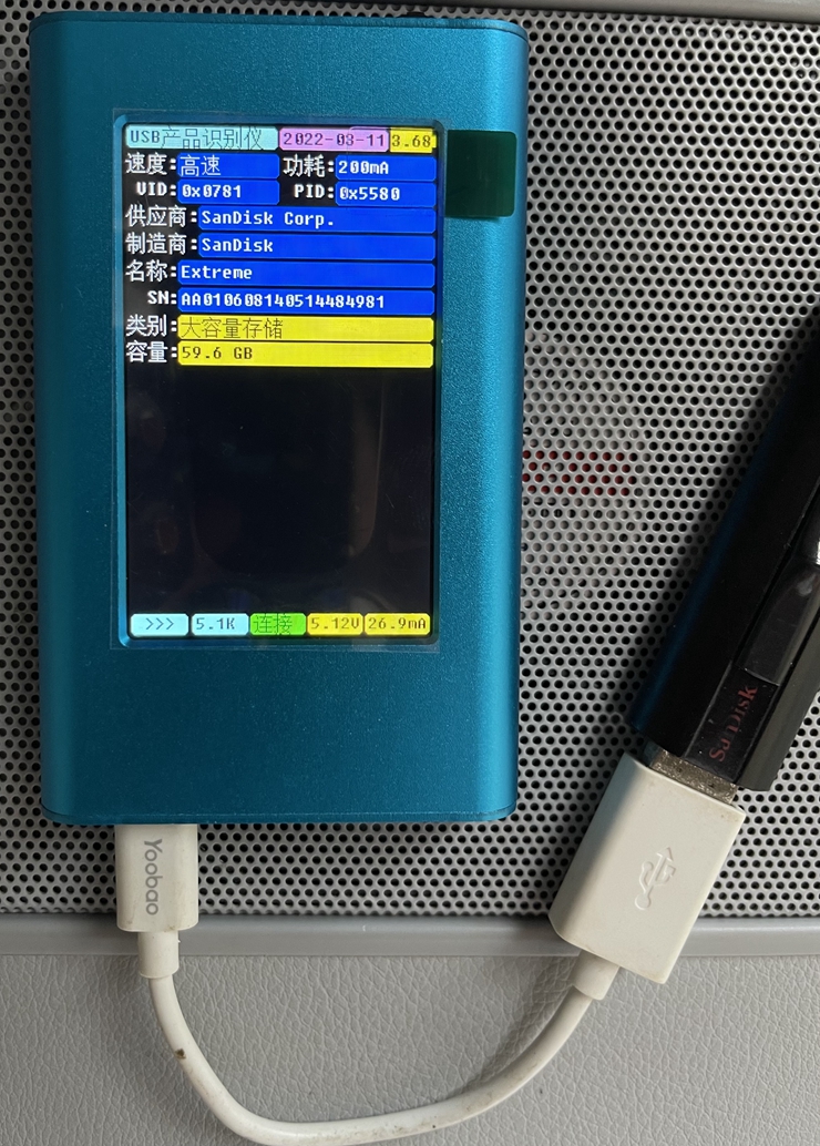 6、 内置锂电池供电,续航时间4小时以上,内置5V升压电路供给被测USB设备。