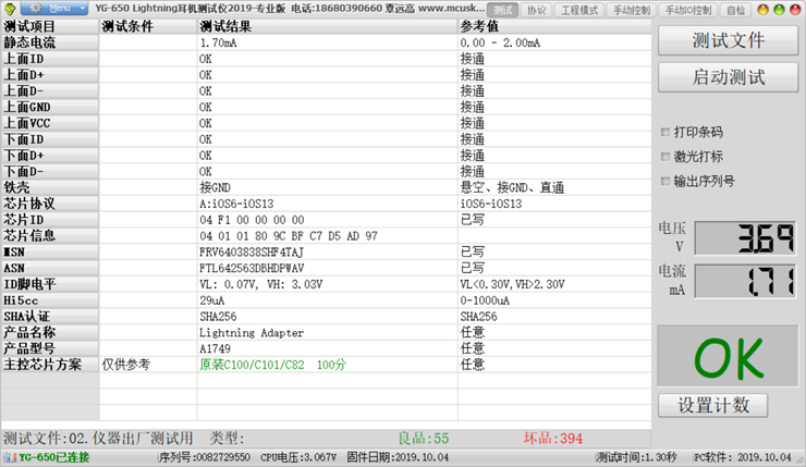 标配软件:YG-650 Lightning耳机测试仪2020-专业版