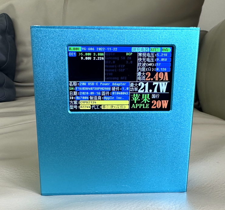 关键词:电源测试仪、苹果电源真假识别器、TYPE-C数据线读码、苹果电源读码打印、快充协议监控