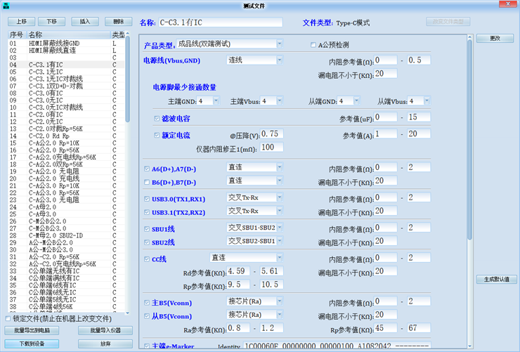 1、 支持带E-Marker芯片的Type-C数据线测试。