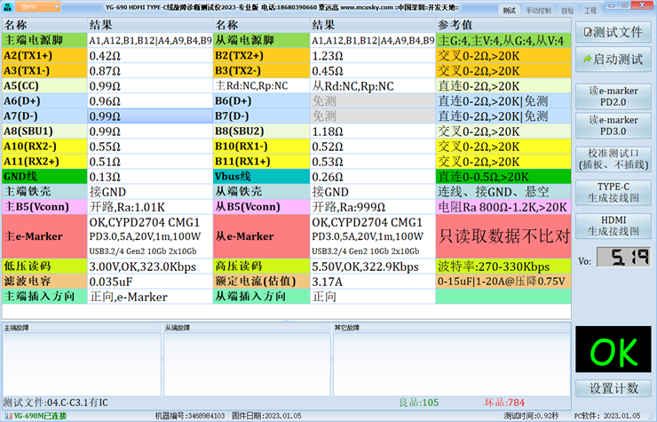 支持所有E-MARKER芯片读码对比数据,另外支持VL150,VL151,VL152,VL152C,VL153,FL7001,FL7031,RT1710,HUSB330/331/332,HUSB332A/332AA,CYPD2103