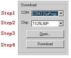 步骤1: 选COM端口,一般只有一个选项:COMx(SpiProg),选定即可.